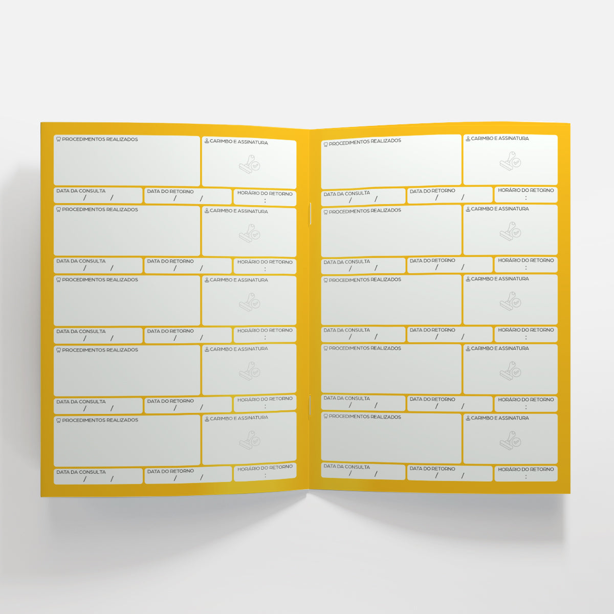 - Número de páginas: 8 páginas, oferecendo espaço adequado para registrar todas as consultas e trocas de dentes.
