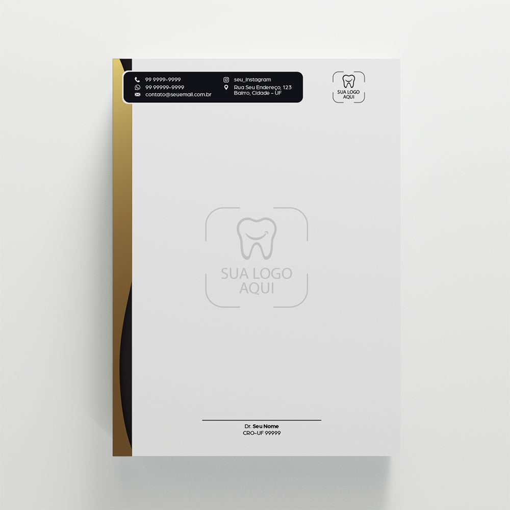 Você pode anexar o seu logotipo no campo acima e descrever todas as alterações que desejar livremente, como mudança de cores, adicionar ou remover informações de contato, endereço ou redes sociais, nome do(a) dentista, CRO etc.