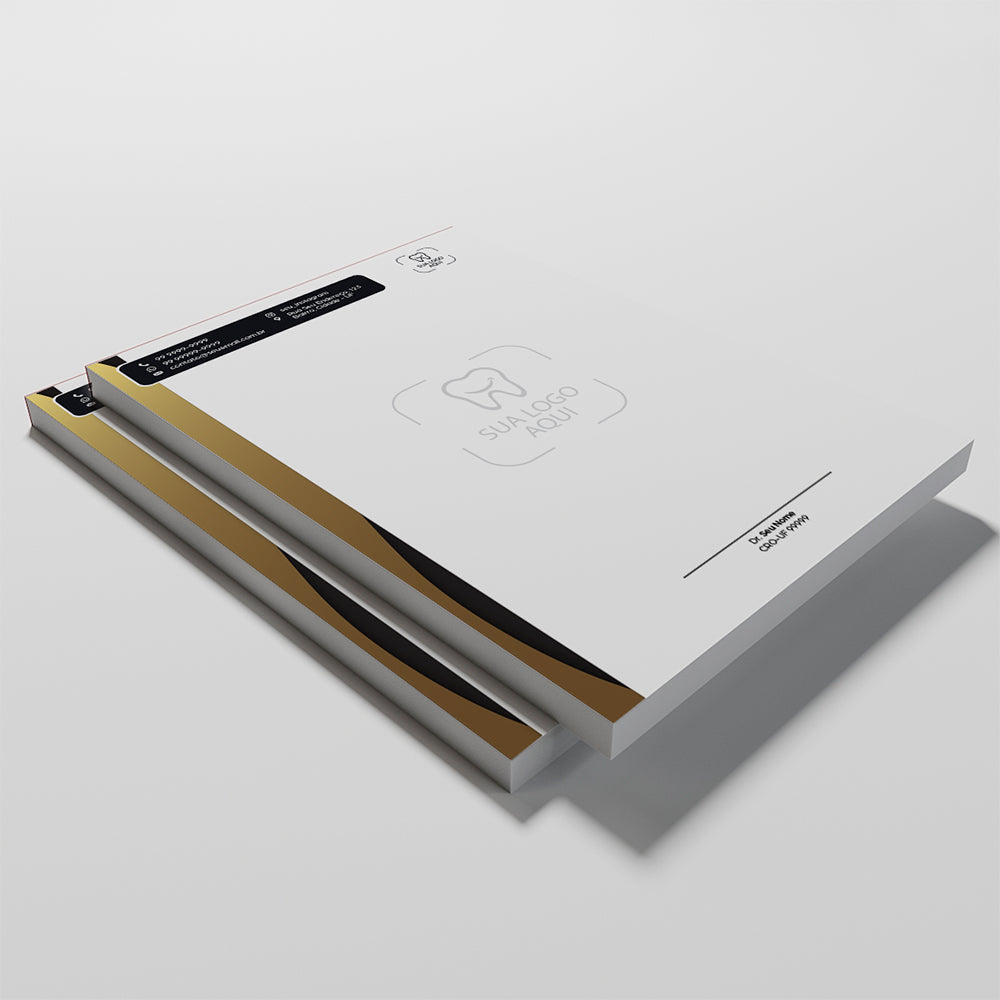 Receituário Odontológico tamanho A5 totalmente personalizável, produzido em papel offset 90g, com 15 cm de largura por 21 cm de altura, colorido frente e sem impressão no verso. Este documento possui validade de até 30 dias após a emissão, conforme estabelece a legislação vigente, especialmente a Portaria SVS/MS nº 344-98. O correto preenchimento do receituário é fundamental para garantir a segurança do paciente, a legalidade da prescrição e o cumprimento das normas estabelecidas pelos órgãos de saúde e pelo Conselho Federal de Odontologia.